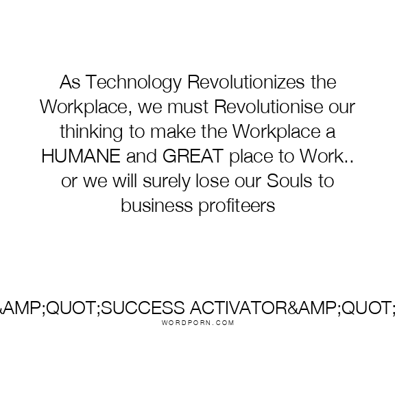 As Technology Revolutionizes the Workplace, we must Revolutionise our thinking to make the Workplace a HUMANE and GREAT place to Work.. or we will surely lose our Souls to business profiteers
