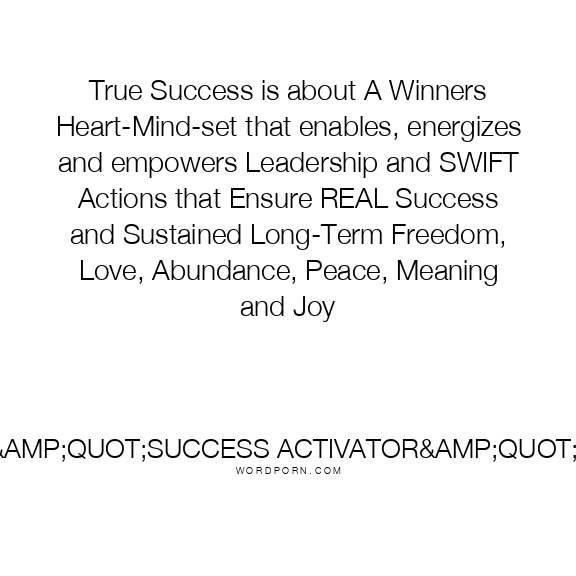 True Success is about A Winners Heart-Mind-set that enables, energizes and empowers Leadership and SWIFT Actions that Ensure REAL Success and Sustained Long-Term Freedom, Love, Abundance, Peace, Meaning and Joy