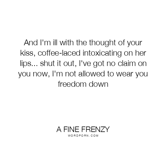 And I'm ill with the thought of your kiss, coffee-laced intoxicating on her lips... shut it out, I've got no claim on you now, I'm not allowed to wear you freedom down