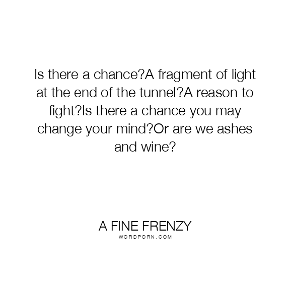 Is there a chance?A fragment of light at the end of the tunnel?A reason to fight?Is there a chance you may change your mind?Or are we ashes and wine?
