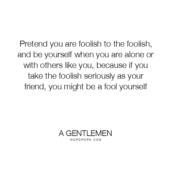 Pretend you are foolish to the foolish, and be yourself when you are alone or with others like you, because if you take the foolish seriously as your friend, you might be a fool yourself