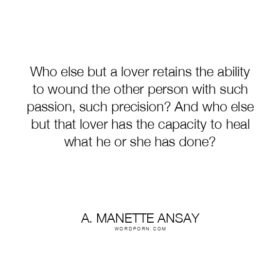 Copy Image Who else but a lover retains the ability to wound the other person with such passion, such precision? And who else but that lover has the capacity to heal what he or she has done? Moms Typewriter A A SAVE THIS IMAGE