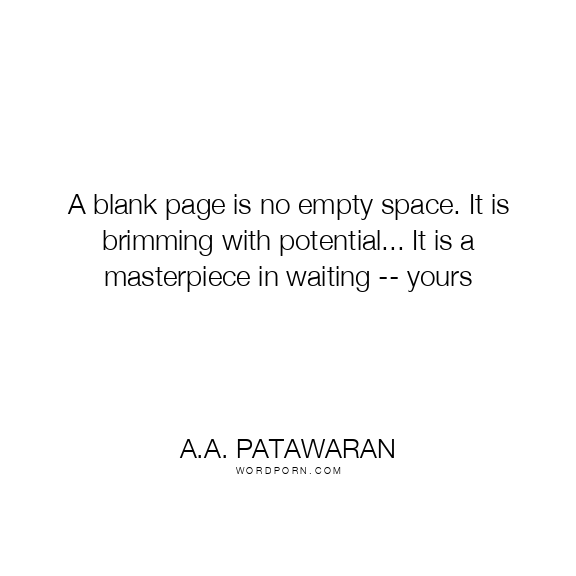 A blank page is no empty space. It is brimming with potential... It is a masterpiece in waiting -- yours
