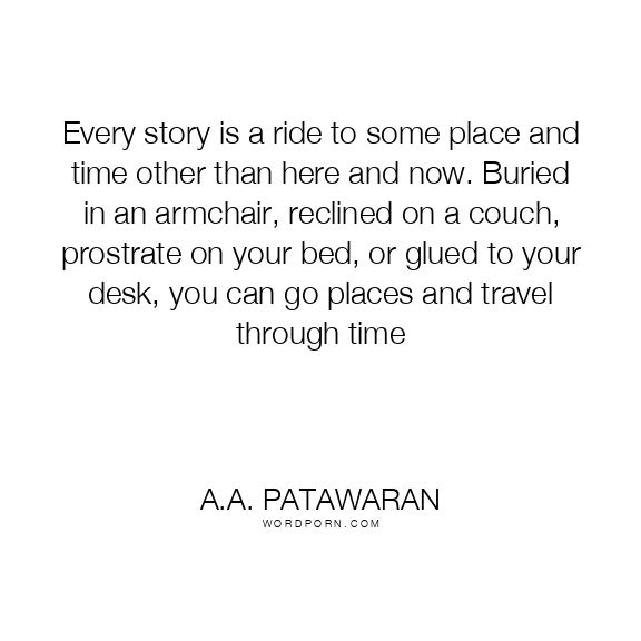 Every story is a ride to some place and time other than here and now. Buried in an armchair, reclined on a couch, prostrate on your bed, or glued to your desk, you can go places and travel through time