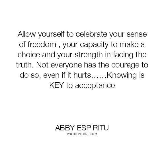 Allow yourself to celebrate your sense of freedom , your capacity to make a choice and your strength in facing the truth. Not everyone has the courage to do so, even if it hurts……Knowing is KEY to acceptance