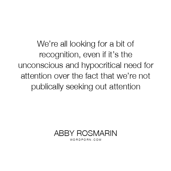 We’re all looking for a bit of recognition, even if it’s the unconscious and hypocritical need for attention over the fact that we’re not publically seeking out attention