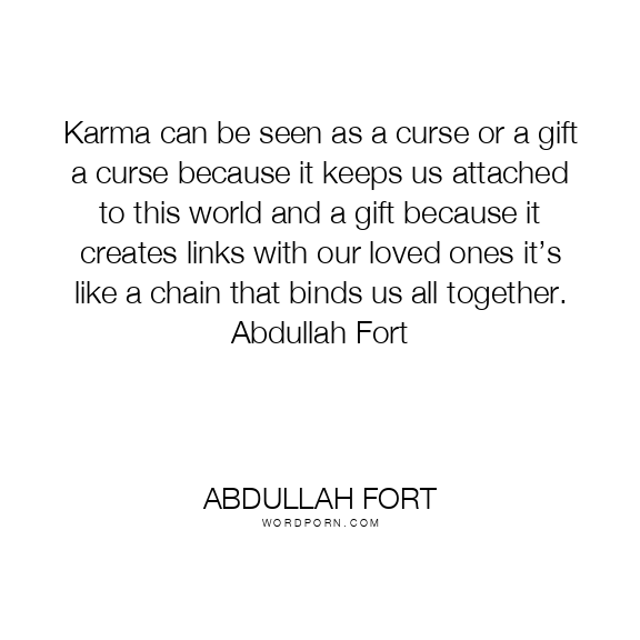 Karma can be seen as a curse or a gift a curse because it keeps us attached to this world and a gift because it creates links with our loved ones it’s like a chain that binds us all together. Abdullah Fort