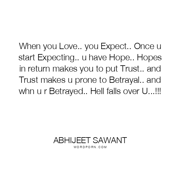 When you Love.. you Expect.. Once u start Expecting.. u have Hope.. Hopes in return makes you to put Trust.. and Trust makes u prone to Betrayal.. and whn u r Betrayed.. Hell falls over U...!!!