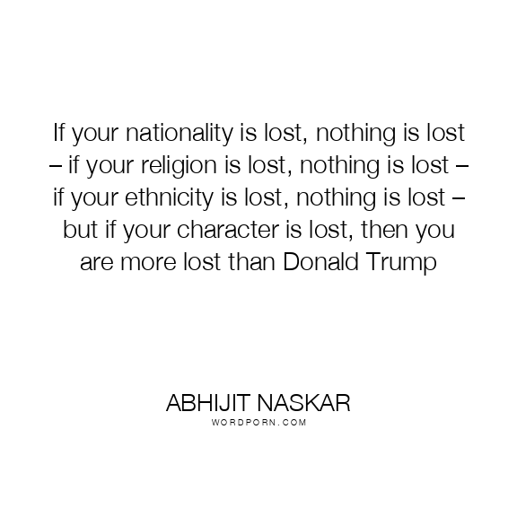 If your nationality is lost, nothing is lost – if your religion is lost, nothing is lost – if your ethnicity is lost, nothing is lost – but if your character is lost, then you are more lost than Donald Trump