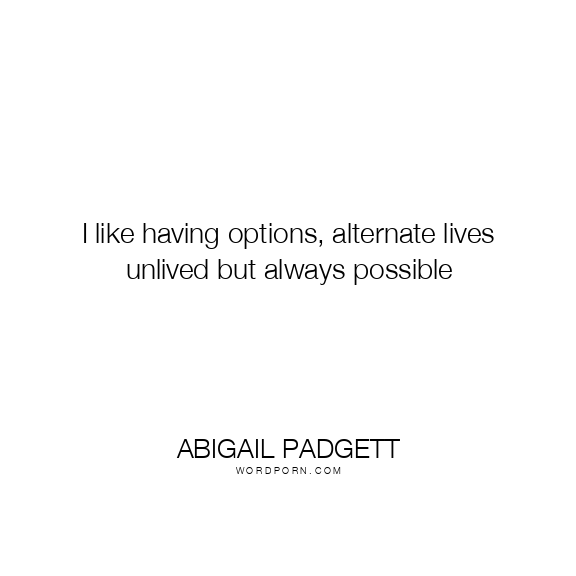 I like having options, alternate lives unlived but always possible