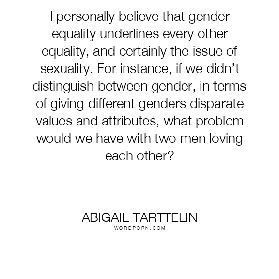 I personally believe that gender equality underlines every other equality, and certainly the issue of sexuality. For instance, if we didn’t distinguish between gender, in terms of giving different genders disparate values and attributes, what problem would we have with two men loving each other?