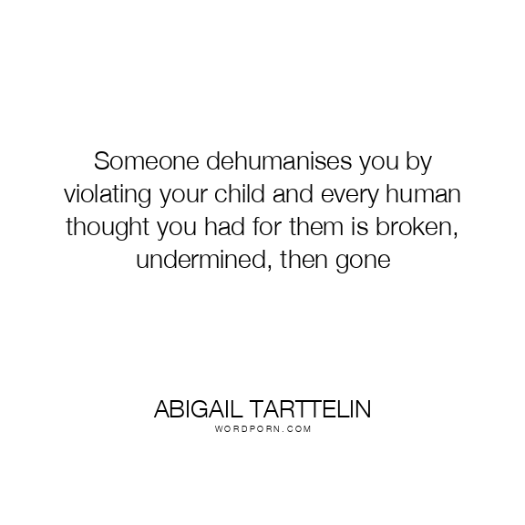 Someone dehumanises you by violating your child and every human thought you had for them is broken, undermined, then gone