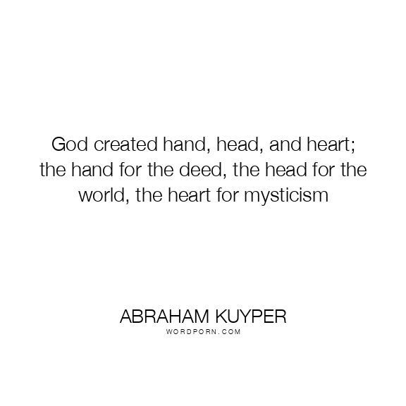God created hand, head, and heart; the hand for the deed, the head for the world, the heart for mysticism