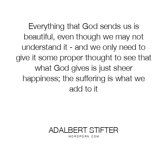 Everything that God sends us is beautiful, even though we may not understand it - and we only need to give it some proper thought to see that what God gives is just sheer happiness; the suffering is what we add to it