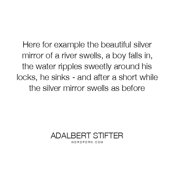 Here for example the beautiful silver mirror of a river swells, a boy falls in, the water ripples sweetly around his locks, he sinks - and after a short while the silver mirror swells as before