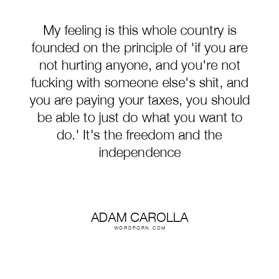 My feeling is this whole country is founded on the principle of 'if you are not hurting anyone, and you're not fucking with someone else's shit, and you are paying your taxes, you should be able to just do what you want to do.' It's the freedom and the independence