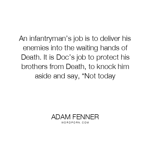 An infantryman’s job is to deliver his enemies into the waiting hands of Death. It is Doc’s job to protect his brothers from Death, to knock him aside and say, “Not today