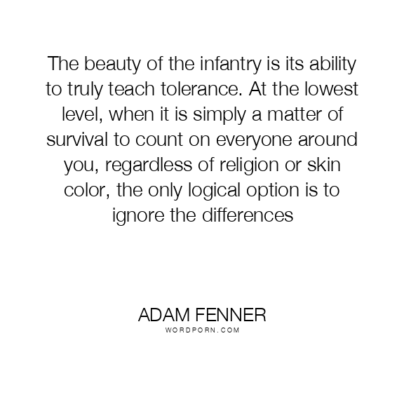 The beauty of the infantry is its ability to truly teach tolerance. At the lowest level, when it is simply a matter of survival to count on everyone around you, regardless of religion or skin color, the only logical option is to ignore the differences
