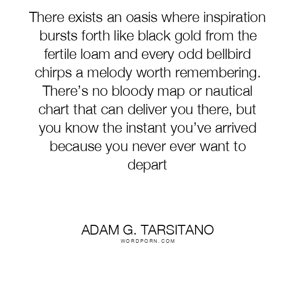 There exists an oasis where inspiration bursts forth like black gold from the fertile loam and every odd bellbird chirps a melody worth remembering. There’s no bloody map or nautical chart that can deliver you there, but you know the instant you’ve arrived because you never ever want to depart