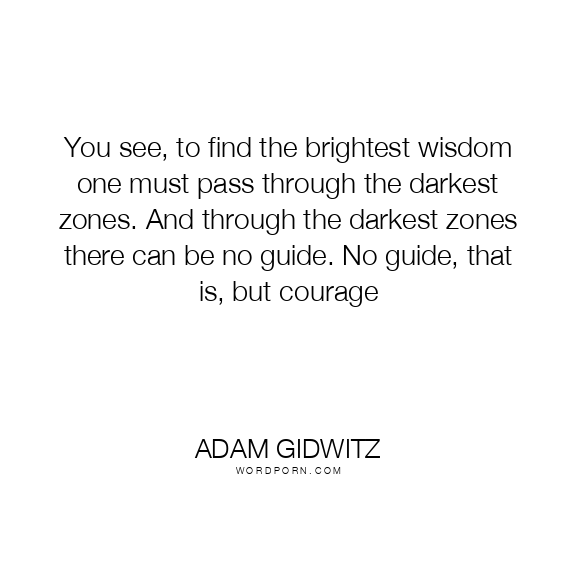 You see, to find the brightest wisdom one must pass through the darkest zones. And through the darkest zones there can be no guide. No guide, that is, but courage