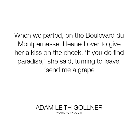 When we parted, on the Boulevard du Montparnasse, I leaned over to give her a kiss on the cheek. ‘If you do find paradise,’ she said, turning to leave, ‘send me a grape