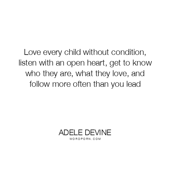 Love every child without condition, listen with an open heart, get to know who they are, what they love, and follow more often than you lead