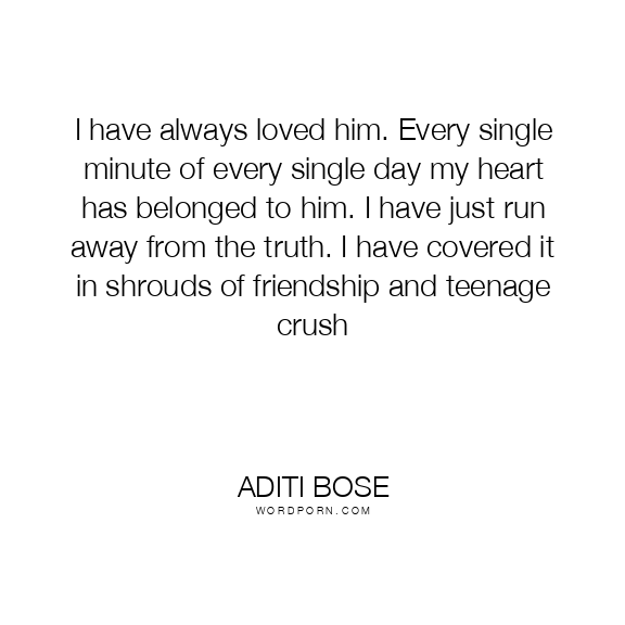 I have always loved him. Every single minute of every single day my heart has belonged to him. I have just run away from the truth. I have covered it in shrouds of friendship and teenage crush