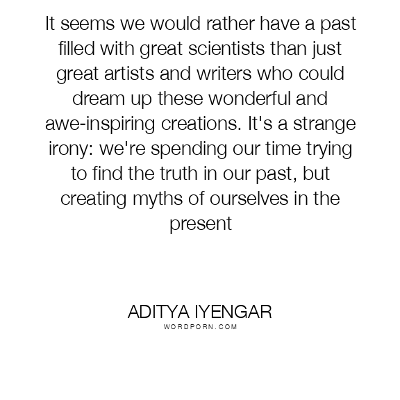 It seems we would rather have a past filled with great scientists than just great artists and writers who could dream up these wonderful and awe-inspiring creations. It's a strange irony: we're spending our time trying to find the truth in our past, but creating myths of ourselves in the present