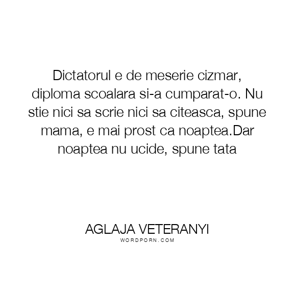 Dictatorul e de meserie cizmar, diploma scoalara si-a cumparat-o. Nu stie nici sa scrie nici sa citeasca, spune mama, e mai prost ca noaptea.Dar noaptea nu ucide, spune tata