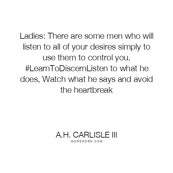 Ladies: There are some men who will listen to all of your desires simply to use them to control you. #LearnToDiscernListen to what he does, Watch what he says and avoid the heartbreak