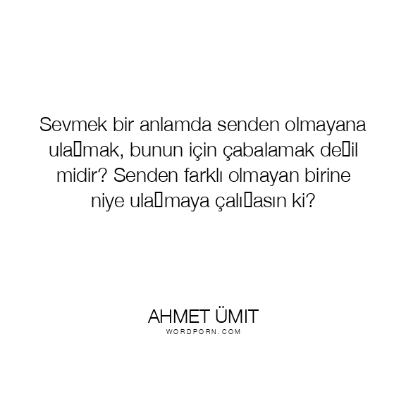 Sevmek bir anlamda senden olmayana ulaşmak, bunun için çabalamak değil midir? Senden farklı olmayan birine niye ulaşmaya çalışasın ki?