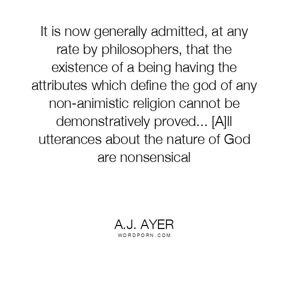 It is now generally admitted, at any rate by philosophers, that the existence of a being having the attributes which define the god of any non-animistic religion cannot be demonstratively proved... [A]ll utterances about the nature of God are nonsensical
