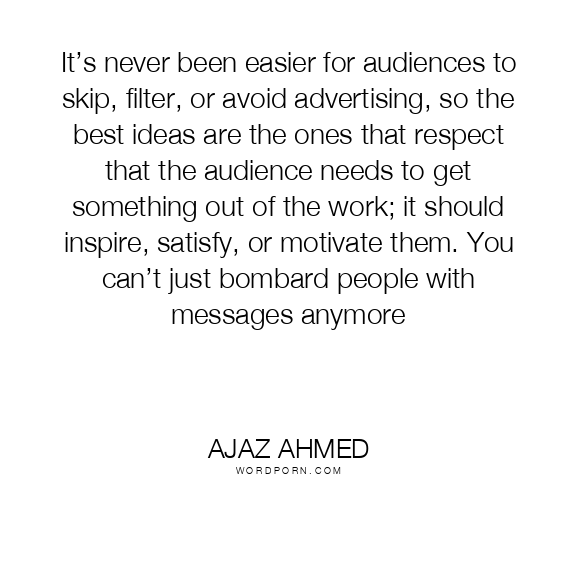 It’s never been easier for audiences to skip, filter, or avoid advertising, so the best ideas are the ones that respect that the audience needs to get something out of the work; it should inspire, satisfy, or motivate them. You can’t just bombard people with messages anymore