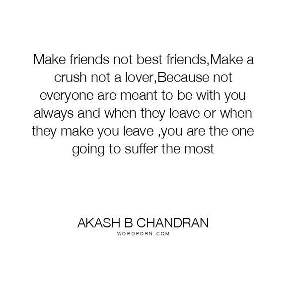 Make friends not best friends,Make a crush not a lover,Because not everyone are meant to be with you always and when they leave or when they make you leave ,you are the one going to suffer the most