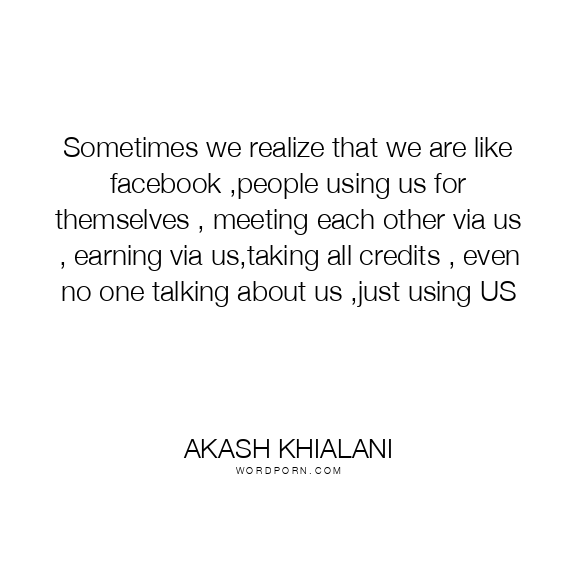 Sometimes we realize that we are like facebook ,people using us for themselves , meeting each other via us , earning via us,taking all credits , even no one talking about us ,just using US