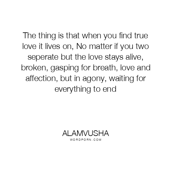 The thing is that when you find true love it lives on, No matter if you two seperate but the love stays alive, broken, gasping for breath, love and affection, but in agony, waiting for everything to end
