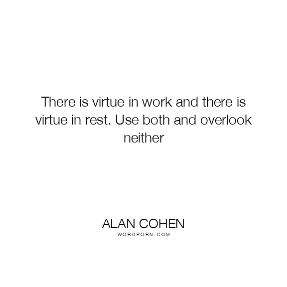 Alan Cohen quote. There is virtue in work and there is virtue in rest. Use both and overlook neither