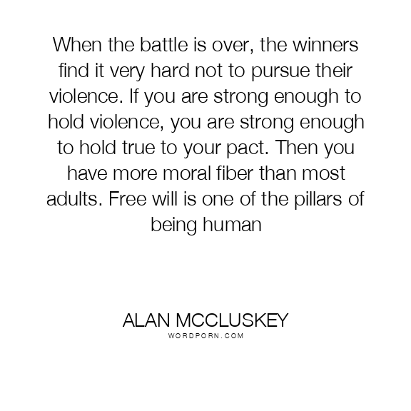 When the battle is over, the winners find it very hard not to pursue their violence. If you are strong enough to hold violence, you are strong enough to hold true to your pact. Then you have more moral fiber than most adults. Free will is one of the pillars of being human