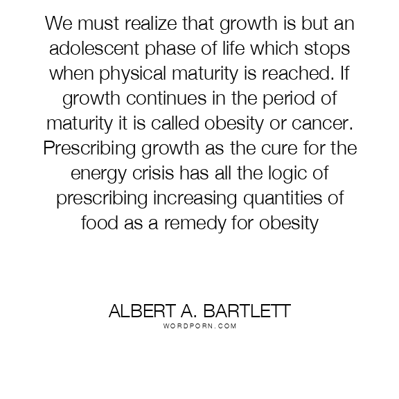 We must realize that growth is but an adolescent phase of life which stops when physical maturity is reached. If growth continues in the period of maturity it is called obesity or cancer. Prescribing growth as the cure for the energy crisis has all the logic of prescribing increasing quantities of food as a remedy for obesity