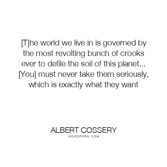 [T]he world we live in is governed by the most revolting bunch of crooks ever to defile the soil of this planet... [You] must never take them seriously, which is exactly what they want