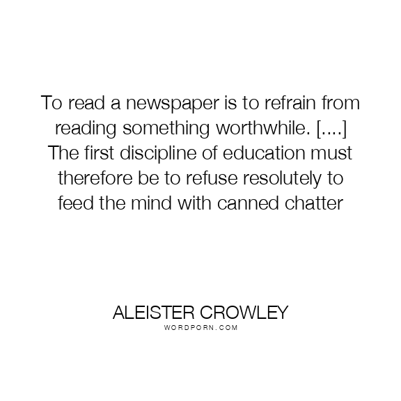 To read a newspaper is to refrain from reading something worthwhile. [....] The first discipline of education must therefore be to refuse resolutely to feed the mind with canned chatter