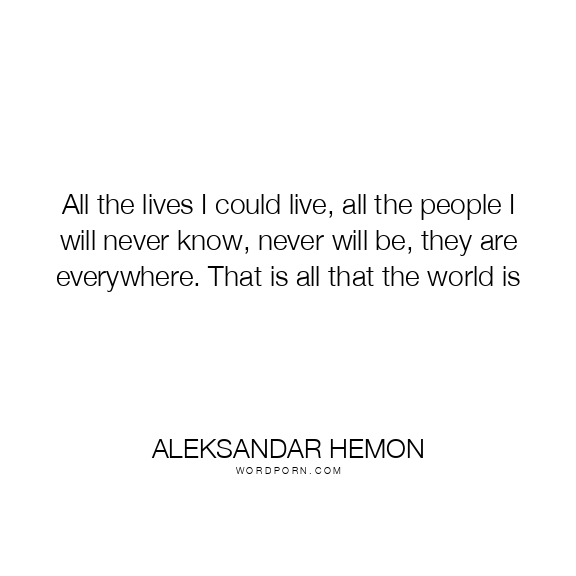 All the lives I could live, all the people I will never know, never will be, they are everywhere. That is all that the world is