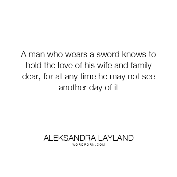 A man who wears a sword knows to hold the love of his wife and family dear, for at any time he may not see another day of it