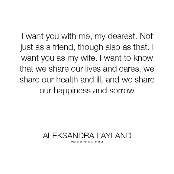 I want you with me, my dearest. Not just as a friend, though also as that. I want you as my wife. I want to know that we share our lives and cares, we share our health and ill, and we share our happiness and sorrow