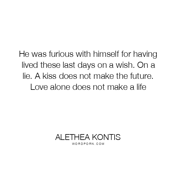He was furious with himself for having lived these last days on a wish. On a lie. A kiss does not make the future. Love alone does not make a life