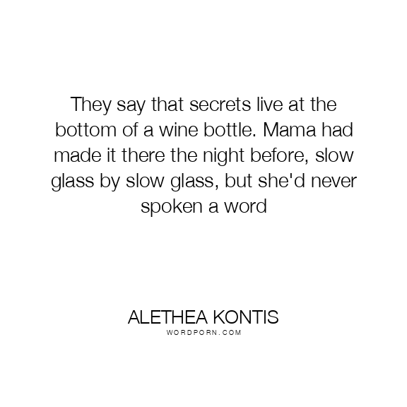 They say that secrets live at the bottom of a wine bottle. Mama had made it there the night before, slow glass by slow glass, but she'd never spoken a word