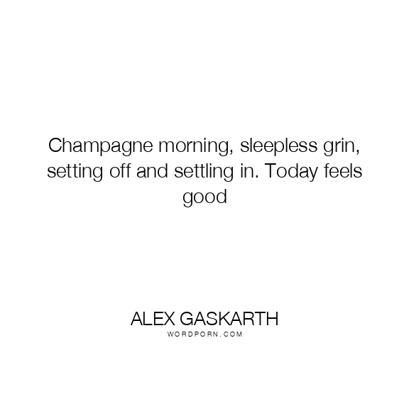 Champagne morning, sleepless grin, setting off and settling in. Today feels good