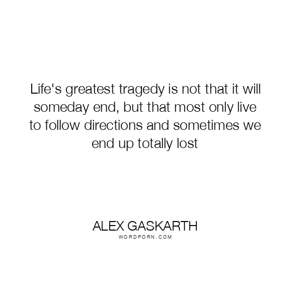 Life's greatest tragedy is not that it will someday end, but that most only live to follow directions and sometimes we end up totally lost