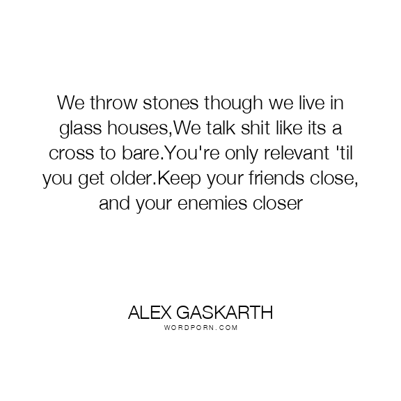 We throw stones though we live in glass houses,We talk shit like its a cross to bare.You're only relevant 'til you get older.Keep your friends close, and your enemies closer