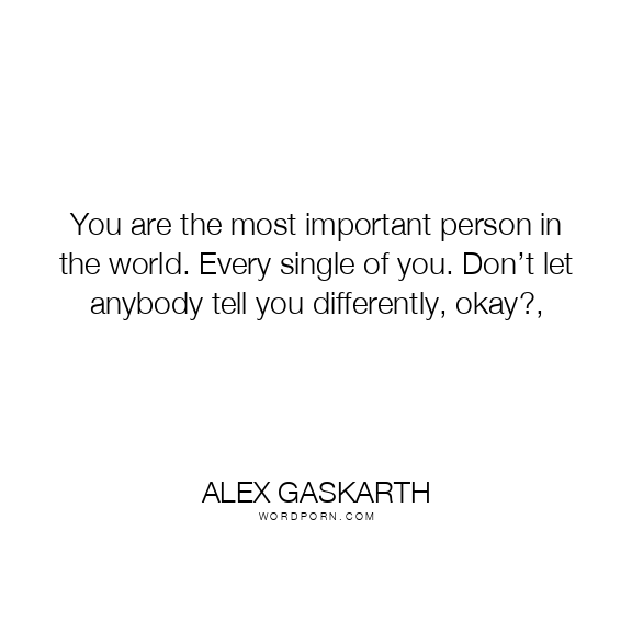 You are the most important person in the world. Every single of you. Don’t let anybody tell you differently, okay?,